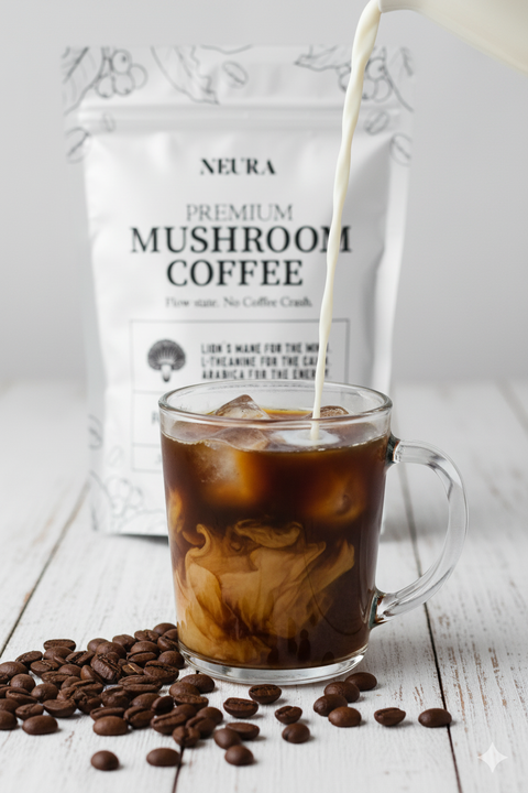 Seenekohv pakub pehmet maitset ja tasakaalustatud energiat ilma kohvikrahhita. Kofeiin ergutab, L-teaniin soodustab rahulikku keskendumist ning lõvilakk toetab vaimset selgust ja pikaajalist fookust.